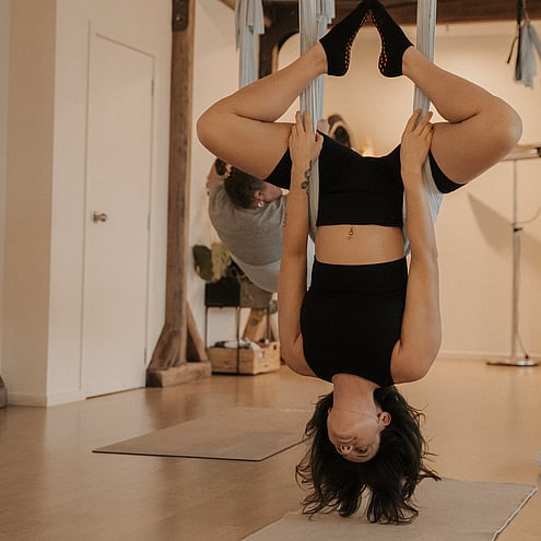 Our aerial classes offer a playful, supportive way to build strength, release tension, and explore movement from a whole new perspective. We offer everything from foundational Aerial Beginners, flowing sessions like Aerial Slow Flow and Aerial Flow, to deeply nourishing practices like Aerial Yin and Aerial Restorative. For those wanting to advance their skills, try Aerial Play and Aerial Sculpt, or join our Aerial Block Courses designed to build confidence and technique week by week.