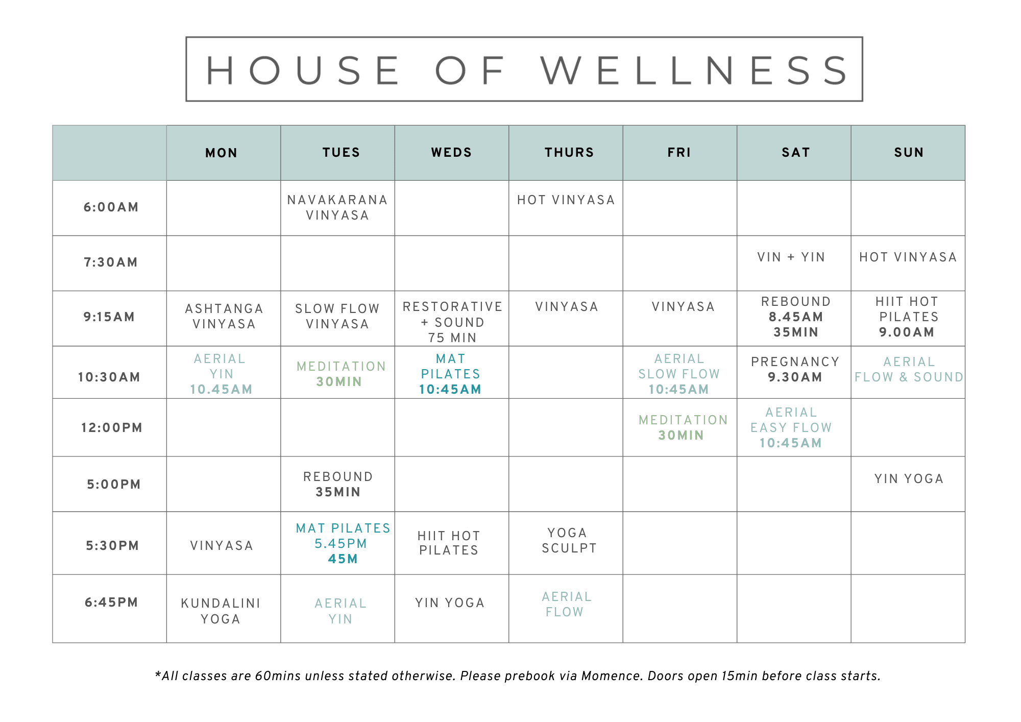 Our movement classes are here to energise, strengthen, and uplift—supporting both your physical and mental wellbeing. Feel the burn in HIIT Hot Pilates, bounce into cardio with Rebound Wellness, build full-body strength in Yoga Sculpt, or centre your core with Mat Pilates.